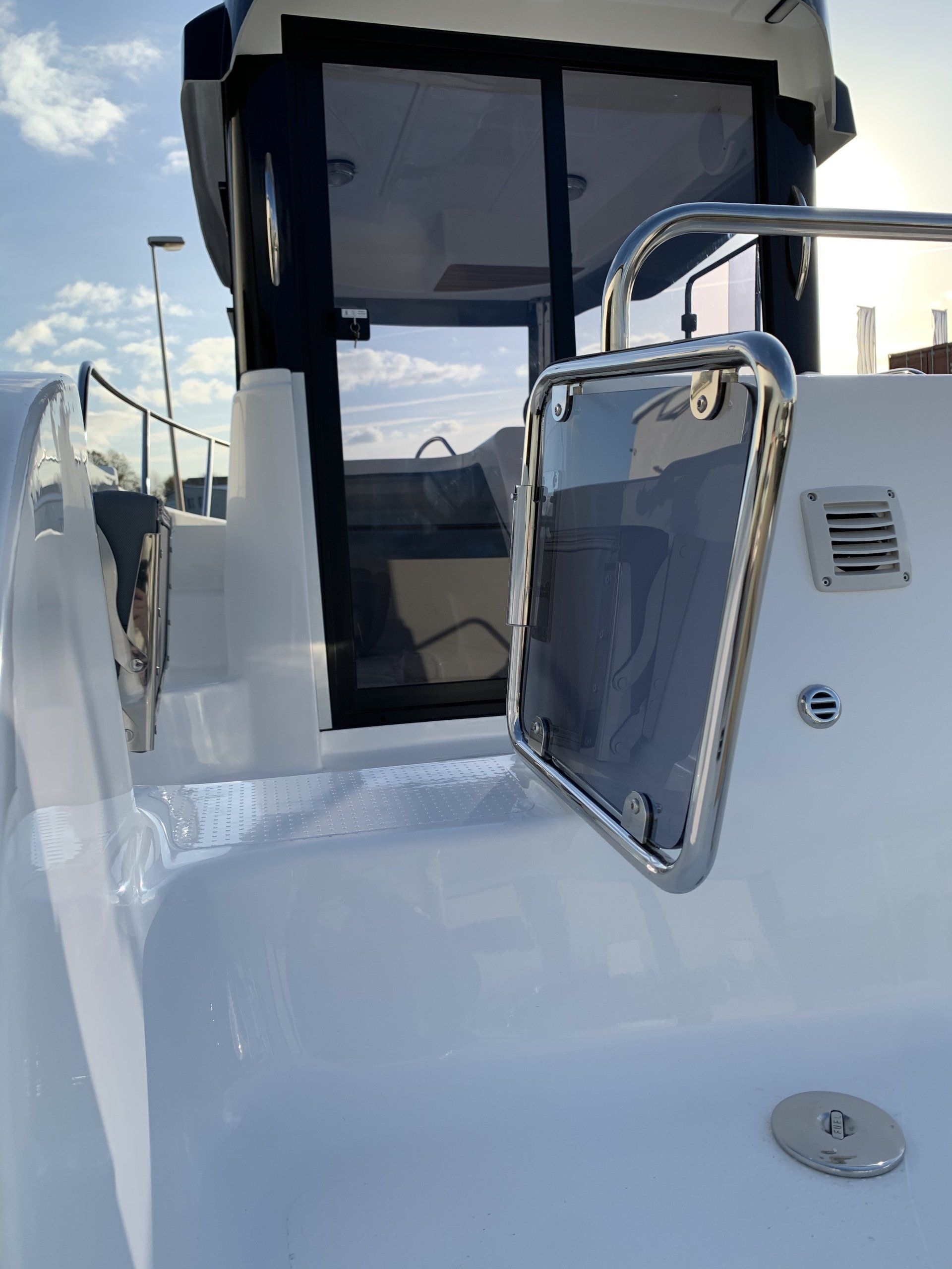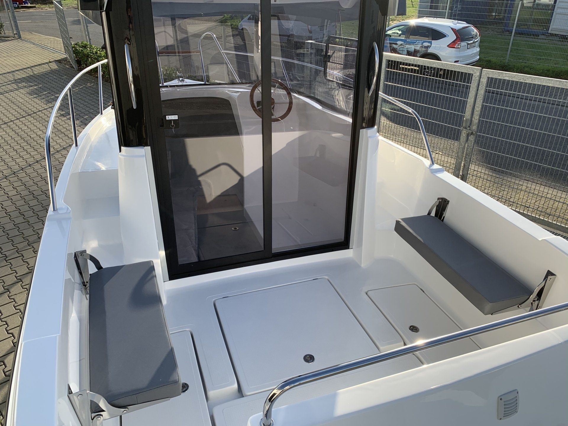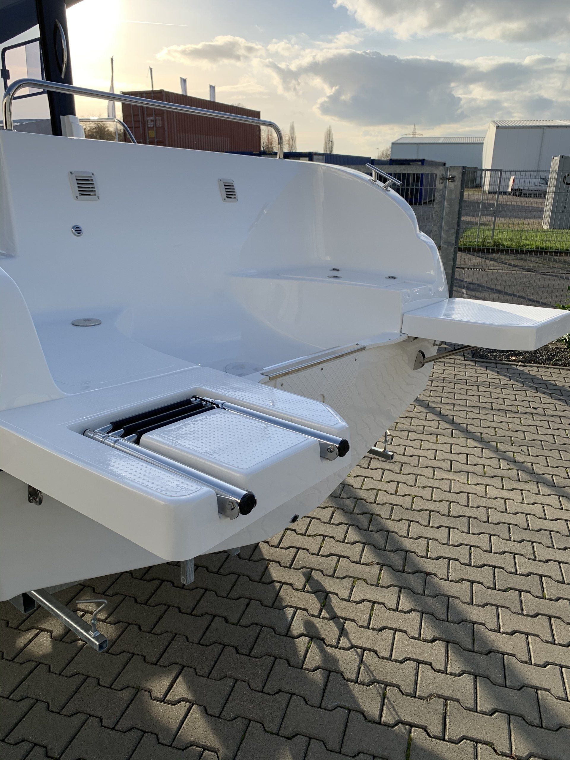 The RaJo MM 655 Pilothouse is one of our latest developments. The boat is based on the hull of the 655 Open and uses the excellent rough water properties, combined with a solid GRP hardtop and fully glazed steering position, the RaJo MM 655 Pilothouse is the optimal boat for stormy days on the water. It offers space for up to 6 people for a dayon the water, and for 2 people at night. The boat was designed with comfort, safety and functionality in mind. An outboard motor with up to 200 hpensures safe and fast travel and numerous options are available for even more fun on the water. High freeboard and great freedom of movement guarantee safety on board. Adults and children can move around the boat effortlessly and safely. But you prefer to enjoy the water rather than being on board? A wide passageway provides easy access to the large bathing platform with bathing ladder, and storage space for snorkels and other diving equipment. A cockpit packed with features: a wide passageway for effortless access to the water, numerous grab handles for rough conditions, space for fishing rod holders wherever you want it. For the crew, the pilothouse is equipped with a large windshield and space for a GPS/chart plotter, radio, and even heating. The RaJo MM 665 pilothouse offers plenty of storage space, the large cabin offers plenty of space for a cool bag, a chemical toilet, cushions, cockpit table and your personal valuables. In the cockpit area there are 3 large storage compartments for all your equipment. The spacious cockpit area can be quickly and easily converted into a comfortable seating area.After a successful fishing session, the fish can be cooked and then enjoyed directly thanks to the optional pantry.