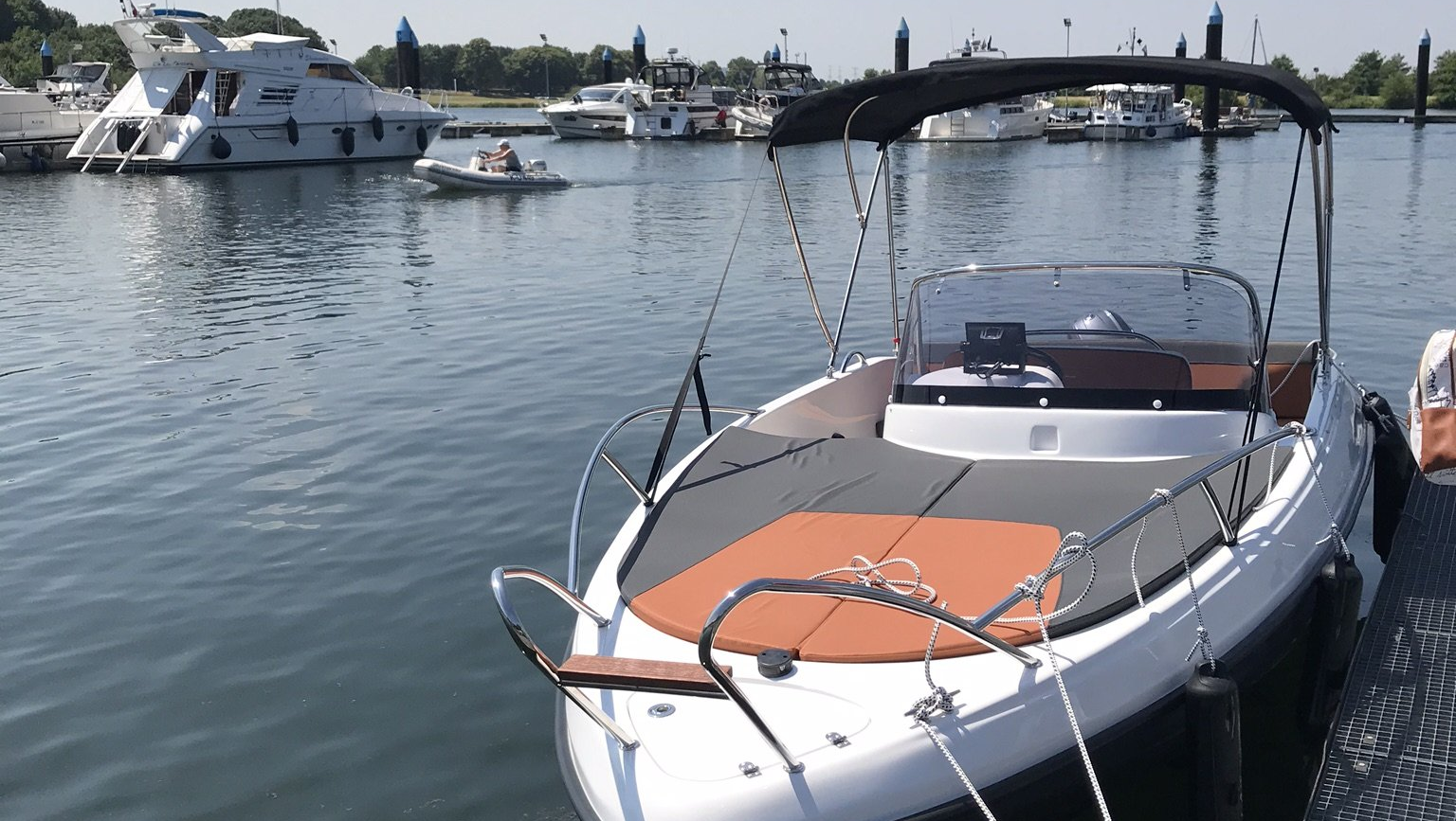 Comfortable entry via the bow area, directly onto the huge sunbathing area, via pleasant steps into the cockpit. Equipped with an L-shaped bench seat and pantry with fresh water tap and built-in compressor refrigerator. 6 people can comfortably sit around the teak cockpit table. The modern helm station offers plenty of space for the latest trim systems, controls for the anchor winch, bow thruster and a large GPS/chart plotter. Analogue engine instruments also find their place. Uniquely large storage for smartphones, sunglasses and drinks is cleverly integrated.