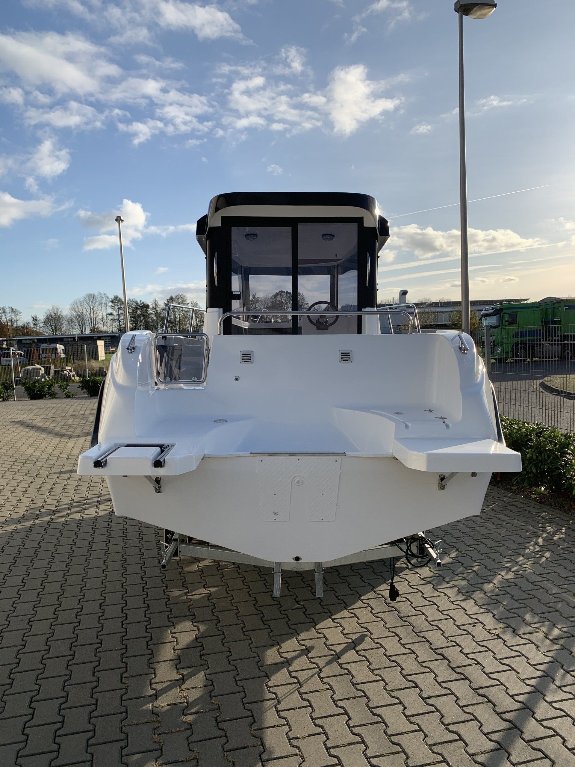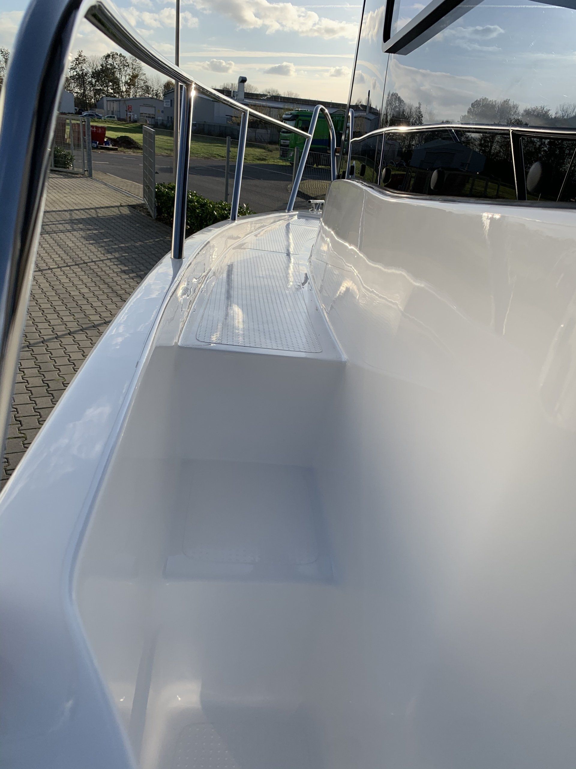 Le RaJo MM 655 Pilothouse est l'un de nos derniers développements. Le bateau est basé sur la coque du 655 Open et utilise les excellentes propriétés des eaux agitées, combinées à un toit rigide solide en GRP et à un cockpit entièrement vitré, le RaJo MM 655 Pilothouse est le bateau optimal pour les journées de tempête sur l'eau. . Il peut accueillir jusqu'à 6 personnes par journéesur l'eau, et pour 2 personnes la nuit. Le bateau a été conçu dans un souci de confort, de sécurité et de fonctionnalité. Un moteur hors-bord jusqu'à 200 chassure des déplacements sûrs et rapides et de nombreuses options sont disponibles pour encore plus de plaisir sur l'eau. Un franc-bord élevé et une grande liberté de mouvement garantissent la sécurité à bord. Adultes et enfants peuvent se déplacer sur le bateau sans effort et en toute sécurité. Mais préférez-vous profiter de l’eau plutôt que d’être à bord ? Un large passage permet d'accéder facilement aux grandes plateformes de baignade dotées d'une échelle de bain et d'un espace de rangement pour les tubas et autres équipements de plongée. Un cockpit riche en fonctionnalités : une large coursive pour accéder à l'eau sans effort, de nombreuses poignées de maintien pour les conditions difficiles, de nombreux porte-cannes à pêche là où vous le souhaitez. Pour l'équipage, le pilothouse est équipé d'un grand pare-brise et d'un espace pour un GPS/traceur de cartes, une radio et même un chauffage. Le RaJo MM 665 Pilothouse offre beaucoup d'espace de rangement, la grande cabine offre beaucoup d'espace pour un sac isotherme, des toilettes chimiques, une sellerie, une table de cockpit et vos objets de valeur personnels. Dans la zone du cockpit se trouvent 3 grands compartiments de rangement pour tout votre équipement. Le cockpit spacieux peut être rapidement et facilement transformé en un coin salon confortabletransformer. Après une séance de pêche réussie, le poisson peut être immédiatement cuit grâce au garde-manger en option puis dégusté.