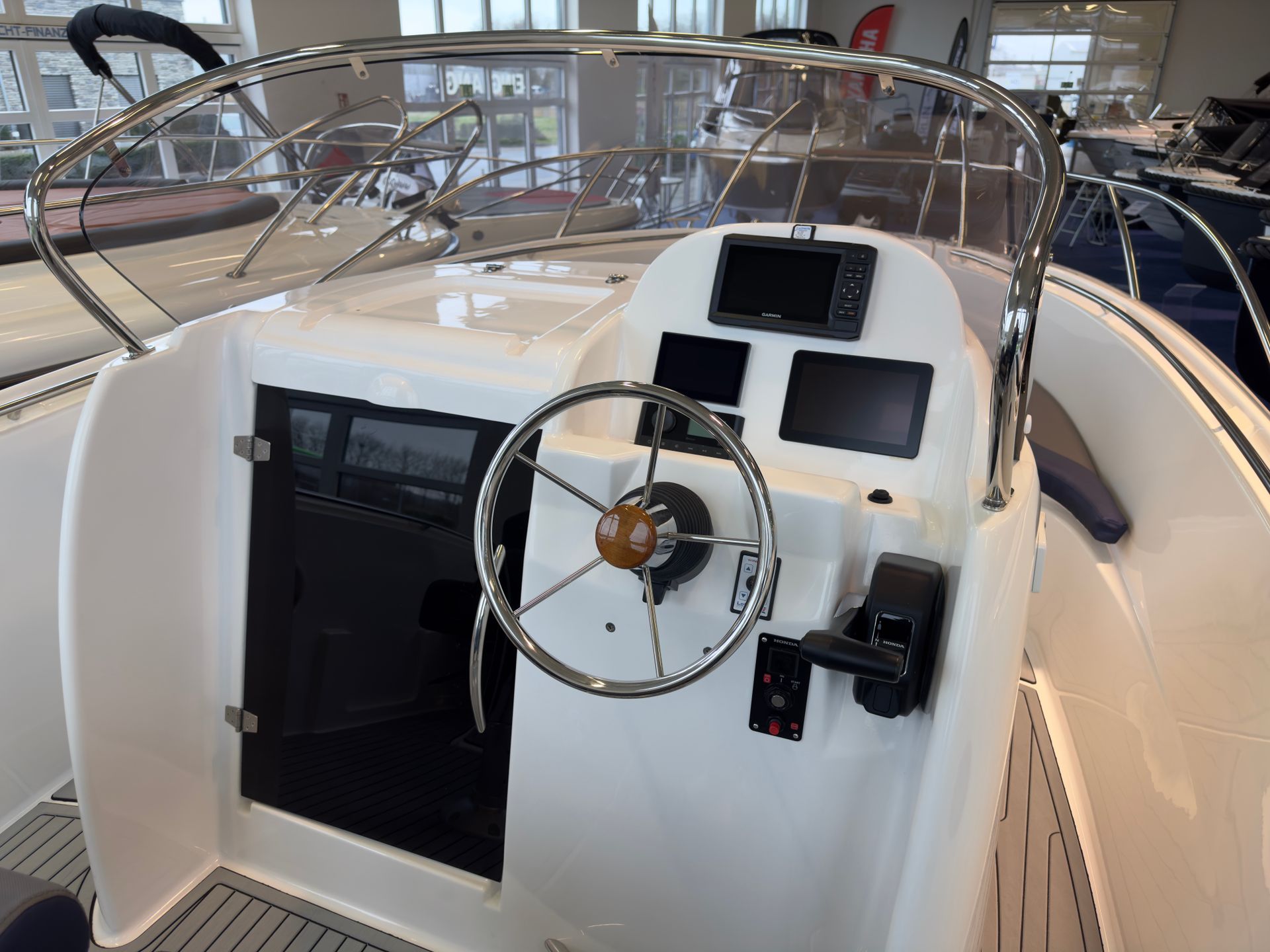 De RaJo MM 730 open is het grootste model uit de Open serie. Elegant, krachtig en zeer comfortabel; de RaJo MM 730 Open is de maatstaf voor prestaties en veiligheid en zorgt voor de beste uren op het water. Snelheid, uitstekende handling en een verscheidenheid aan functies voor plezier en prestaties maken het de ideale keuze voor watersporten en dagtochten voor maximaal 10 personen.